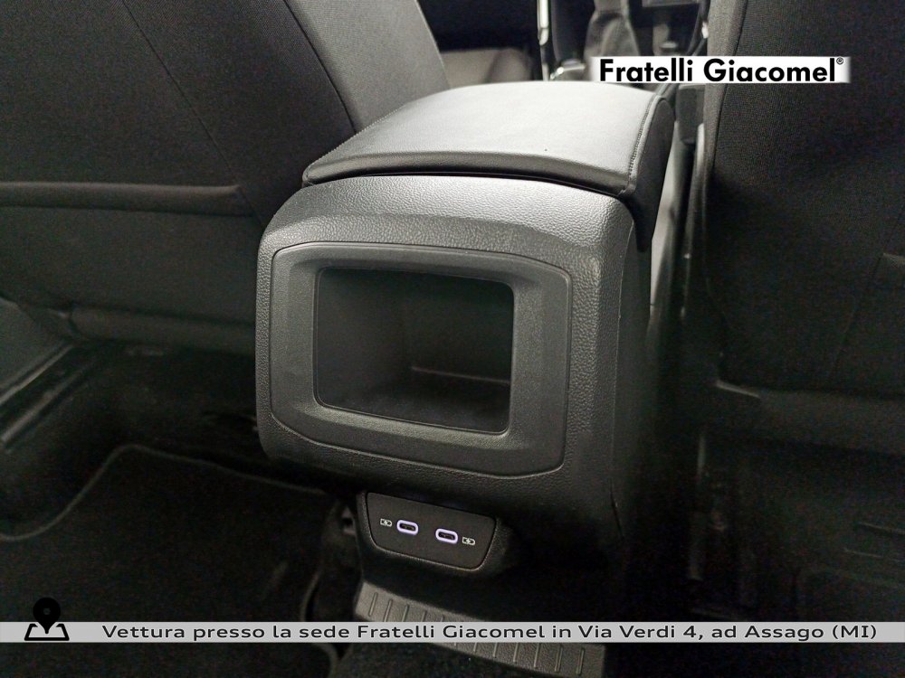 Bracciolo centrale anteriore con vano portaoggetti regolabile in altezza e profondità con 2 ingressi USB-C di ricarica posteriori